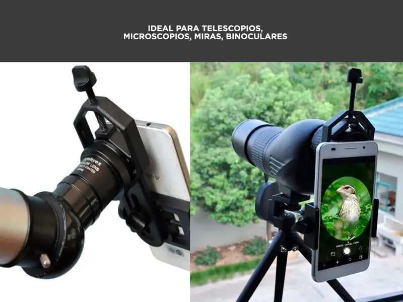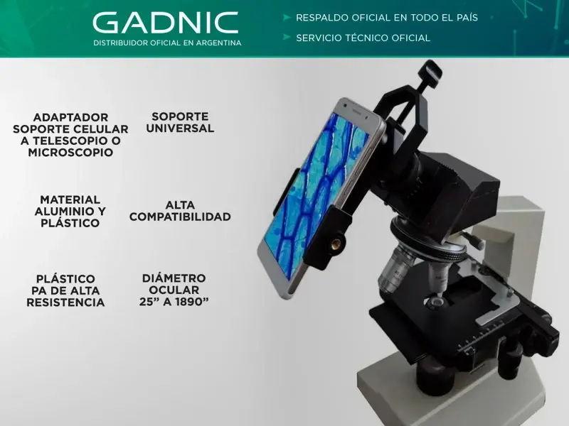 Acerca de Adaptador Soporte Celular A Telescopio/Microscopio¡Nuevo Adaptador Soporte de Celular a Telescopio/Microscopio Gadnic !Disfruta explorando : con el adaptador de plástico para telescopio de teléfono celular Gadnic TELESC13 , conecta tu teléfono con telescopio o microscopio para explorar escenas muy hermosas y sorprendentes del micro mundo.Carcasa de aleación de aluminio; resistente y ligera; la abrazadera del teléfono está hecha de plástico PA de alta resistencia y cuenta con un mecanismo de bloqueo ajustable con un perno de acero, no un muelle.
