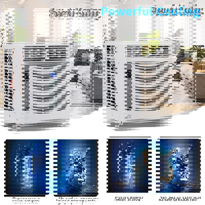 Los aires acondicionados de ventana ROVSUN de 6000 BTU están fabricados con un compresor de alta calidad, un motor de cobre puro de alta velocidad y un tubo interior de cobre en espiral para una refrigeración más eficiente y una vida útil más prolongada, lo que te brinda una vida más fresca en el caluroso verano.
