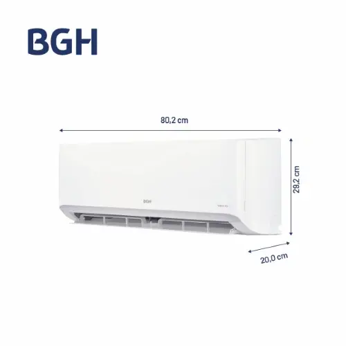 Aire Acondicionado Split Frío/Calor BGH BS35WCDW Confort eficiente para tu hogar. El BGH BS35WCDW es la opción ideal para climatizar ambientes medianos, con una capacidad de 3600W en frío (3096 frigorías) y 3400W en calor. Su tecnología On/Off asegura un desempeño confiable y constante en cualquier estación del año. Eficiencia energética superior Con clase A+ en refrigeración y A en calefacción, este equipo ofrece un consumo reducido sin comprometer rendimiento. Su COP de 3,61 y índice de eficiencia energética estacional (IEEE) de 3,61 garantizan estabilidad y ahorro en cada uso. Funciones pensadas para tu bienestar El BS35WCDW integra características que elevan tu experiencia diaria: Filtro antibacterias para un aire más limpio y saludable. Función autolimpiante que prolonga la vida útil del equipo. Modo Sleep para un descanso óptimo. Turbo y Hot Start: máxima potencia en frío o calor desde el inicio. Deshumidificación automática para ambientes más confortables. Control remoto con display LCD para un manejo práctico. Deflector móvil y control de flujo vertical para una mejor distribución del aire. Funciones automático, solo ventilación y timer programable que se adaptan a tu rutina. Silencioso y compacto Unidad interior (Ancho x Profundidad x Alto): 80,2 × 20 × 29,5 cm, con un nivel sonoro desde 30 dB(A), ideal para mantener la tranquilidad de tu hogar. Unidad exterior (Ancho x Profundidad x Alto): 72 × 27 × 49,5 cm, robusta y confiable, con 55 dB(A) de ruido y preparada para un uso intensivo. Gas refrigerante R32: eficiente y responsable Este modelo utiliza R32, un refrigerante moderno que no daña la capa de ozono y mejora el rendimiento energético, cuidando al mismo tiempo el medioambiente. Respaldo y confianza Con el sello de BGH, líder en climatización en Argentina, asegurás calidad, soporte y garantía en cada compra. BGH BS35WCDW: potencia equilibrada, eficiencia energética y confort superior para tu hogar.