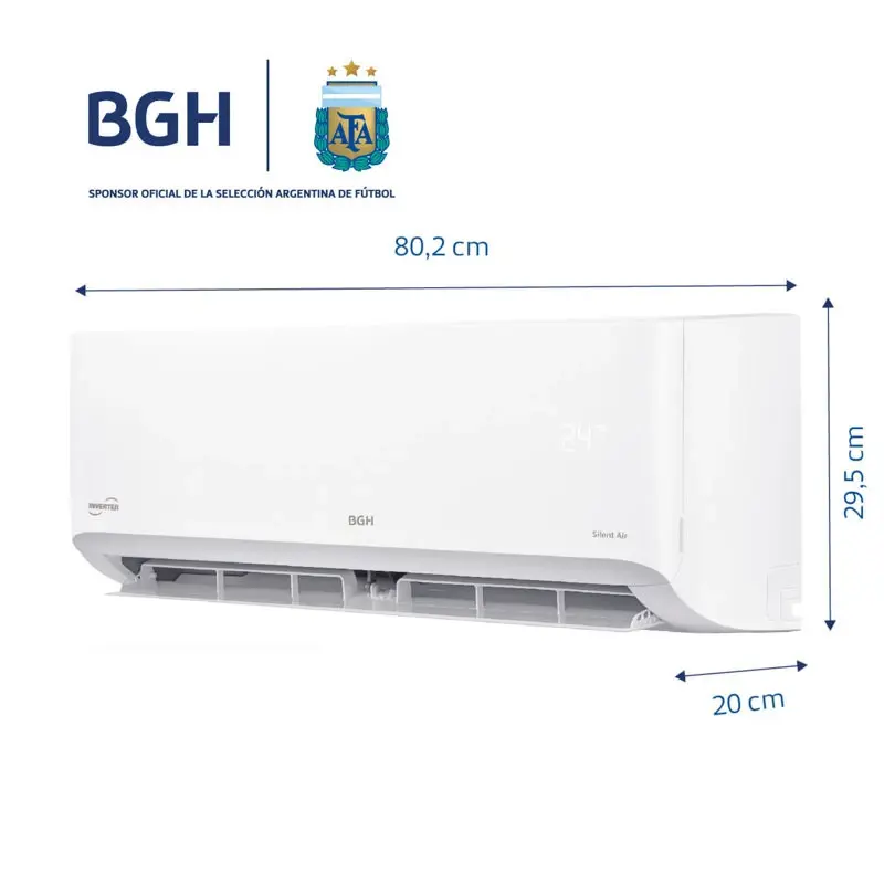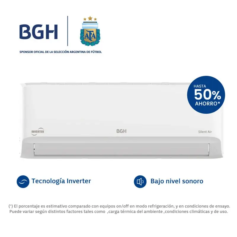 Aire Acondicionado Split Frío/Calor BGH Silent Air Inverter BSI35WCLW Eficiencia, confort y tecnología en cada estación El BGH Silent Air Inverter BSI35WCLW es la solución ideal para climatizar tu hogar o espacio de trabajo con máxima eficiencia y rendimiento. Gracias a su tecnología Inverter, este equipo ajusta de forma inteligente la velocidad del compresor, garantizando un ahorro energético significativo, una temperatura estable sin cambios bruscos y un funcionamiento más silencioso. Rendimiento superior en frío y calor Este aire acondicionado ofrece una capacidad de refrigeración de 3500W y 3650W en calefacción, adaptándose a todas las estaciones del año. Su clasificación energética A++ en frío y A en calor asegura un consumo eficiente, cuidando tu economía y el medio ambiente. Mayor confort con funciones avanzadas Modo Turbo: potencia máxima para enfriar o calentar en menos tiempo. Función Sleep: ajuste automático de temperatura para un descanso óptimo. Deshumidificación: reduce la humedad ambiental y mejora la calidad del aire. Deflector de aire móvil y control de flujo vertical, que distribuyen el aire de manera uniforme en todo el ambiente. Autolimpiante: evita la acumulación de humedad y bacterias en el equipo. Aire más puro con filtro antibacterias El filtro de alta eficiencia atrapa polvo, polen y otras partículas contaminantes, proporcionando un ambiente más saludable para vos y tu familia. Diseño compacto y silencioso Con un nivel de ruido interior de solo 35,5 dB en su configuración más baja, el BGH Silent Air Inverter asegura una climatización cómoda sin interrupciones. Su diseño moderno y compacto facilita la instalación en cualquier espacio. Detalles técnicos destacados Potencia de refrigeración: 1090W / Potencia de calefacción: 1010W Gas refrigerante R32: más eficiente y ecológico Control remoto con display LCD para un manejo intuitivo Timer programable para optimizar el consumo Dimensiones evaporadora: 80,2x20x29,5 cm | Peso neto: 8,2 kg Dimensiones condensadora: 68x24,8x54,2 cm | Peso neto: 20 kg Se debe revisar en el manual la información para la instalación. Garantía y respaldo de BGH BGH, líder en climatización en Argentina, ofrece garantía y servicio técnico especializado para que disfrutes de tu aire acondicionado con total tranquilidad. Optimizá tu confort con el BGH Silent Air Inverter. Comprá el tuyo hoy!