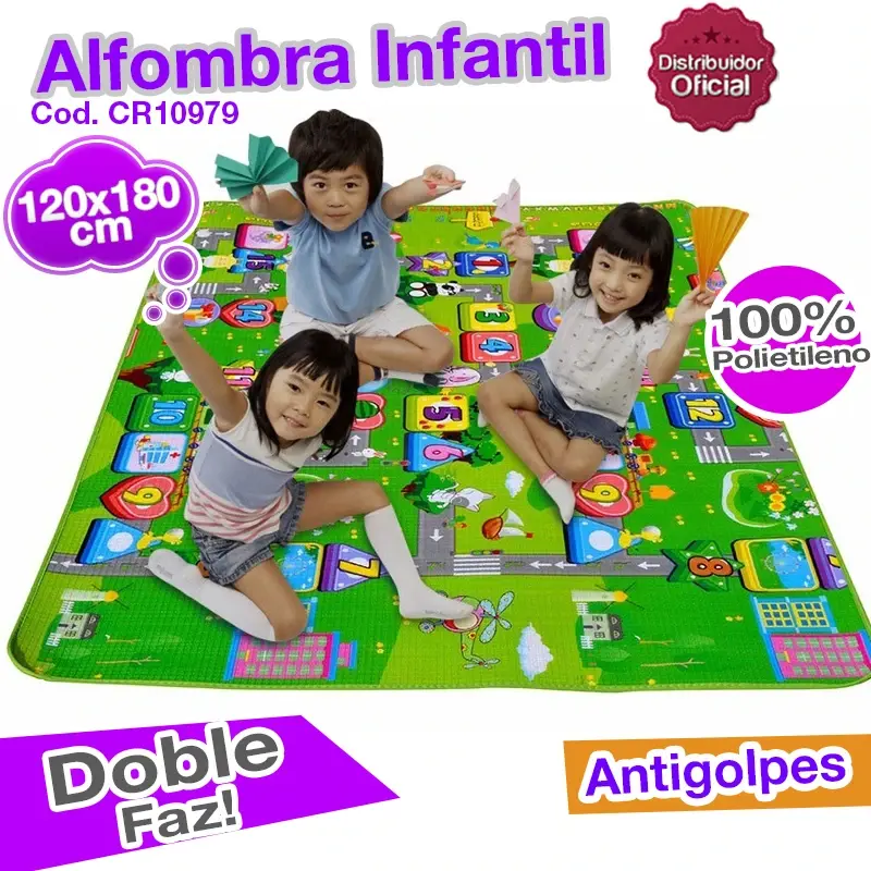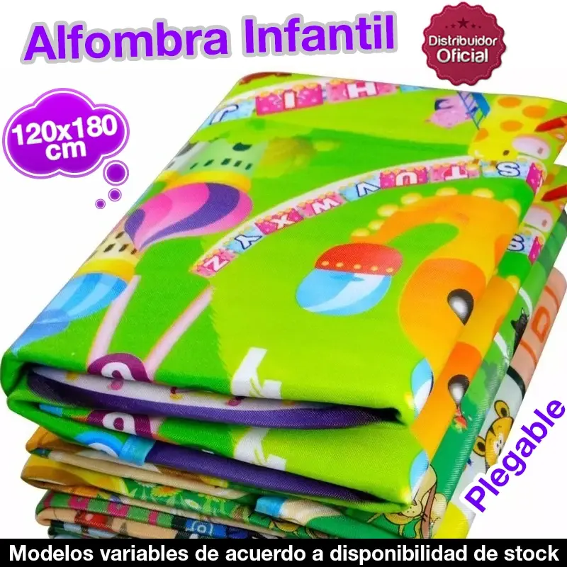 ALFOMBRA INFANTIL ANTIGOLPES 1.20 x 1,80 mtsCod. 0979*- El modelo de la alfombra se entrega de acuerdo a disponibilidad de stock en el momento *-Características Alfombra• Medidas: 120 x 180 cm• Grosor: 5 mm, aproximadamente.• 100% Polietileno• Antigolpes• Doble faz• Fácil de transportar• Impermeable• Antideslizante• Incluye funda con mania• La mejor opción para tu camping, casa o playa• Previene golpes y raspaduras• Ideal hasta los 5 años• Dibujos coloridos y llamativos (Se entregan de acuerdo a disponibilidad de stock)