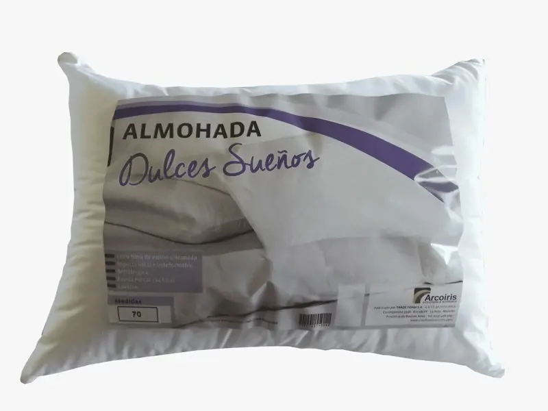 – Confeccionada con fibra sintética siliconada – Soporte ideal, indeformable – Antialérgica y lavable – Funda percal de primera calidad – Terminación con cordón de color – Logo bordado