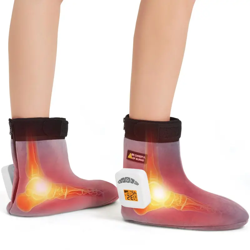 - Diseño: elementos calefactores ultradelgados y flexibles que cubren dedos y arcos