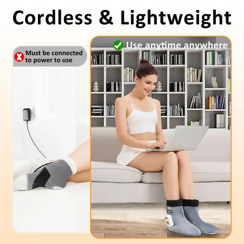 - Almohadilla térmica para pies inalámbrica con tecnología de calentamiento rápido para un calor rápido y constante.