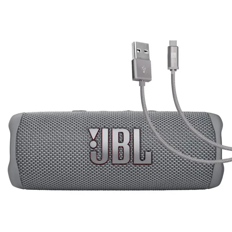 ALTAVOZ Y CABLE: este paquete incluye un (1) cable JBL Flip 6 en gris y un (1) cable gris de carga y sincronización USB tipo C trenzado Case Logic de 6 pies.