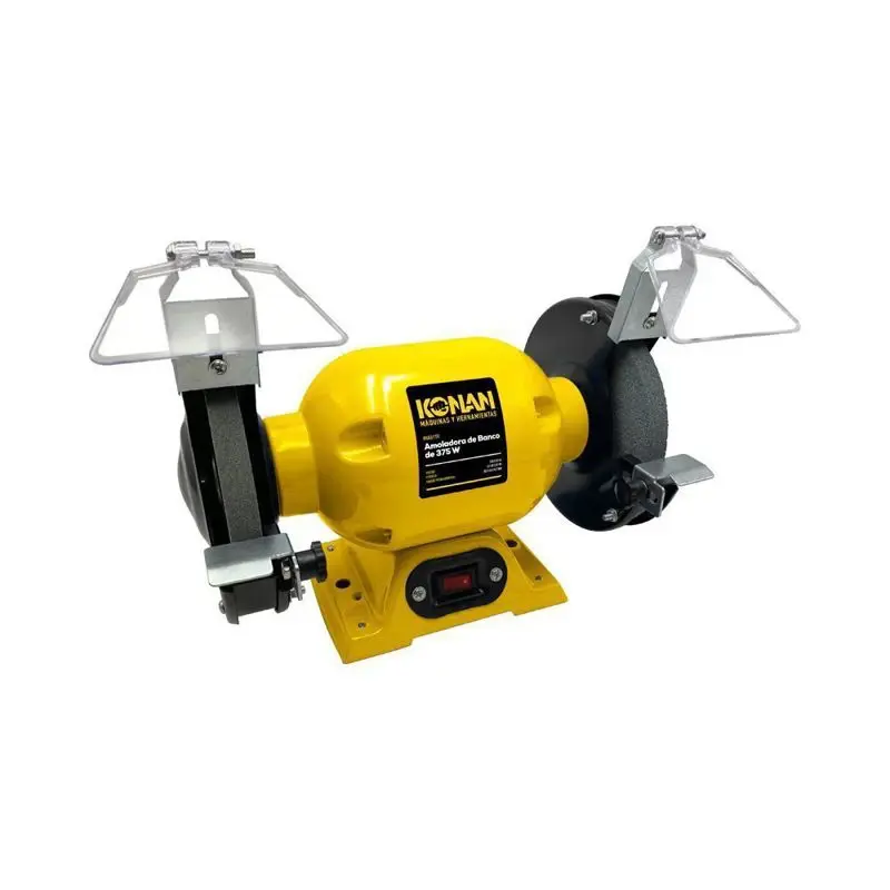 KONANAMOLADORA DE BANCO 1/2HP 375WIncluye: · 2 piedras abrasivas ·perforaciones en base para anclaje ·protectores de policarbonatoVoltaje: 220 V 50 HzPotencia: 1/2 HP (375 W)Velocidad sin carga: 2950 rpmTamaño piedra abrasiva: 150 × 16 ×12,7 mm