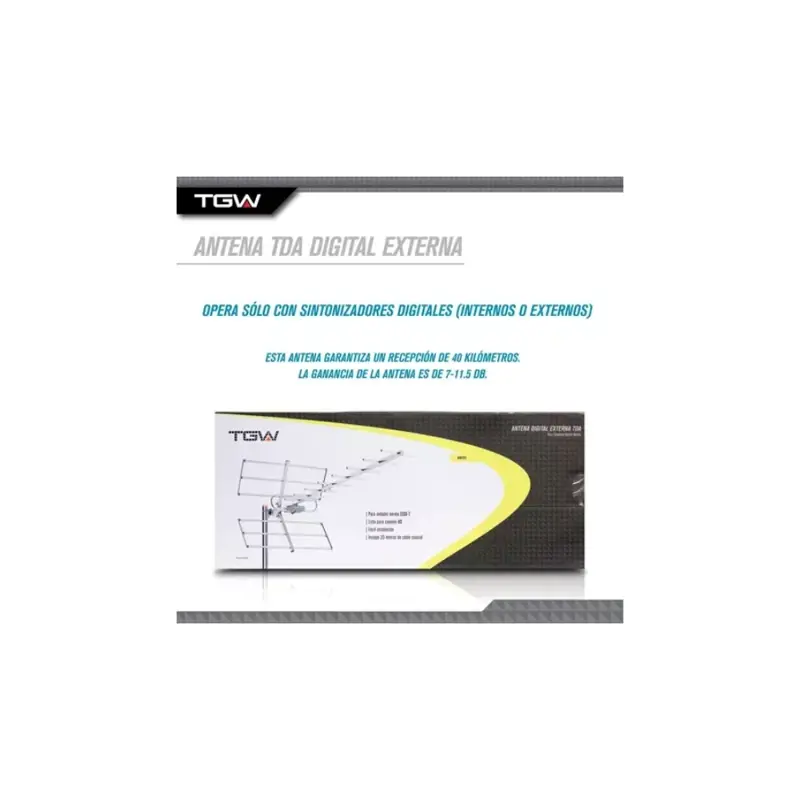 La antena Tda Digital Externa 20mts De Cable Coaxil TGW es la opción perfecta para disfrutar de la televisión digital terrestre con la mejor calidad de imagen y sonido. Con su diseño externo y fabricada en aluminio, garantiza una excelente recepción de señal en cualquier ubicación.