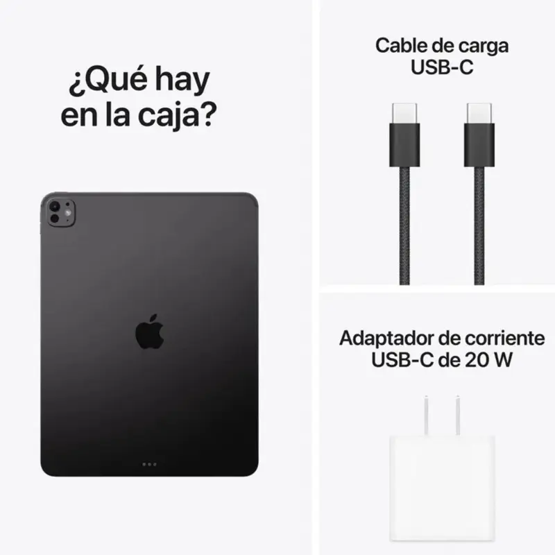 Características TécnicasConectividad:Wi-Fi: SiRed:Wi-FiGPS: SíNFC: SíPuerto Micro USB: NoRadio: SíPuerto HDMI: NoBluetooth: SíSensores:SiSIM: NoImagenTamaño de Pantalla: 13''Resolución de pantalla: 2064 x 2752Capacidad Multitouch: SiMemoriaMemoria Interna: 256 GBMemoria RAM: 12 GBSistema OperativoSistema Operativo: iPadOsProcesadorMod. Procesador: Apple M5CámaraCámara Trasera: 12 MpxCámara Frontal: 12 MpxBateríaBatería: Polimero de LitioCaracterísticas generalesColor: SpaceBlackRefabricado: No