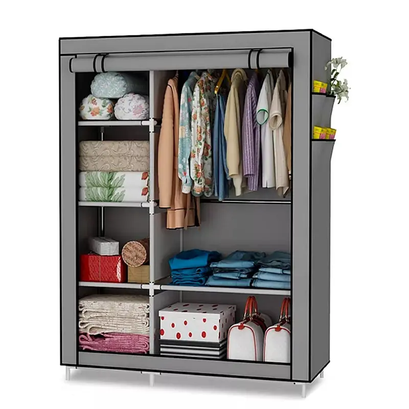 Armario portátil WAGGS ARPO05, práctico y resistente, ideal para organizar ropa, calzado y accesorios en espacios reducidos. Su diseño incluye 4 estantes y un sector con barra para colgar prendas, funda protectora con cierre frontal y estructura de tubos galvanizados fáciles de armar sin herramientas. Perfecto para mudanzas, ropa de temporada o almacenamiento auxiliar, combina funcionalidad, ligereza y versatilidad en cualquier ambiente.