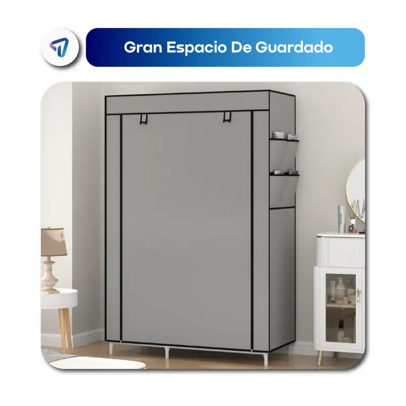 Armario portátil WAGGS ARPO05, práctico y resistente, ideal para organizar ropa, calzado y accesorios en espacios reducidos. Su diseño incluye 4 estantes y un sector con barra para colgar prendas, funda protectora con cierre frontal y estructura de tubos galvanizados fáciles de armar sin herramientas. Perfecto para mudanzas, ropa de temporada o almacenamiento auxiliar, combina funcionalidad, ligereza y versatilidad en cualquier ambiente.
