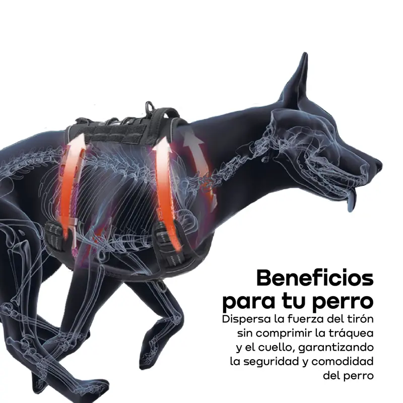 El arnés táctico para perro WAGGS está diseñado para brindar máximo control, comodidad y seguridad en paseos y entrenamientos diarios, adaptándose a perros pequeños, medianos y grandes. Su estructura reforzada con tejido acolchado y malla respirable protege la piel y asegura confort incluso en usos intensivos, mientras que el sistema antitirones con clip frontal y trasero permite un manejo firme y equilibrado. Incorpora hebilla lateral de cierre rápido tipo nesting para colocarlo en segundos, D-rings metálicos de alta resistencia y asa superior para control manual inmediato. El diseño reflectivo mejora la visibilidad nocturna y suma seguridad en entornos urbanos o con poca luz. Ajustable, resistente y funcional, es la opción ideal para quienes buscan durabilidad, control y estilo en un solo arnés. WAGGS acompaña cada salida con rendimiento y diseño pensado para tu perro.