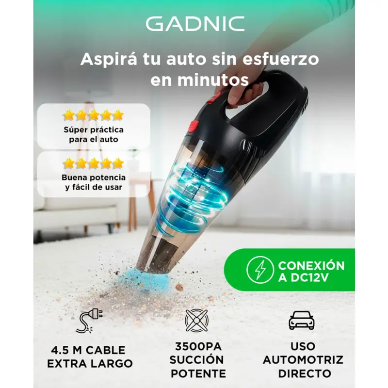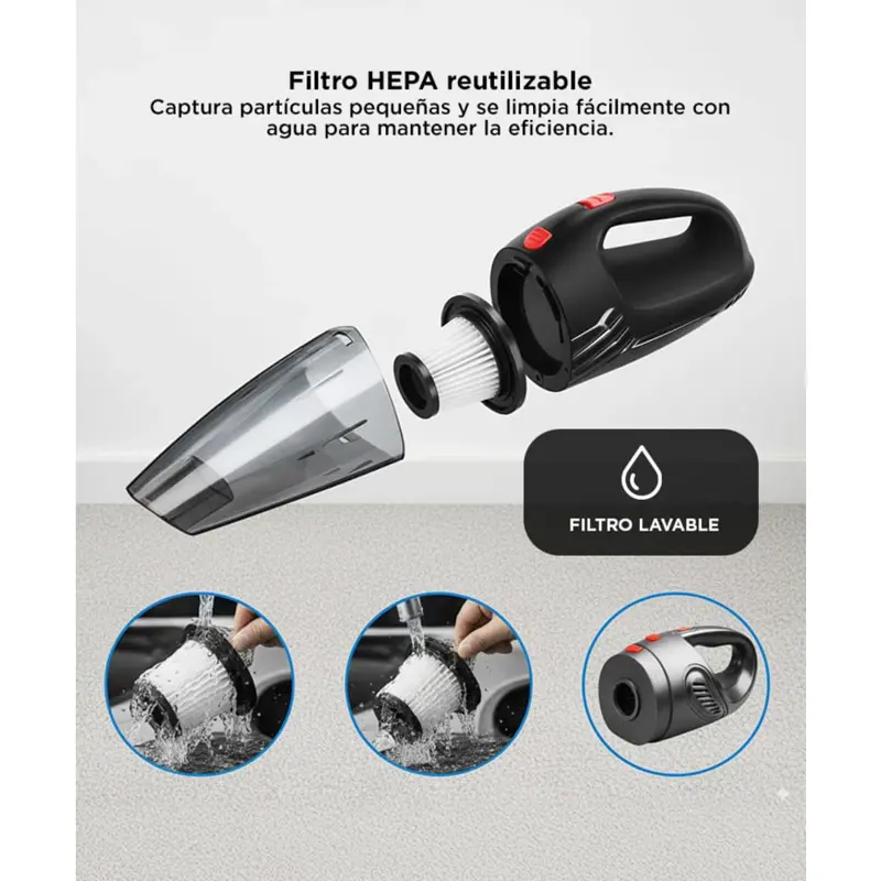 ¡Mantené tu auto siempre impecable con esta Aspiradora 12 volt! Limpia sobre seco con una succión de gran alcance. La aspiradora posee filtro Hepa y es perfecta para todos los vehículos. Su tamaño es ideal para poder transportarla sin problema a todas tus travesías, además poder llevarla en su bolso para así tener mas comodidad aun.
