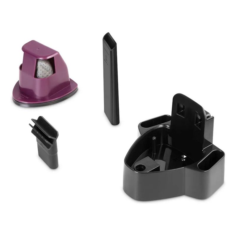 Incluye una completa gama de accesorios: boquilla para líquidos, boquilla para rincones, base de carga, porta accesorios y filtro reutilizable, todo pensado para mejorar tu experiencia de limpieza.