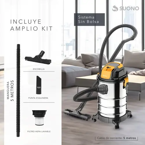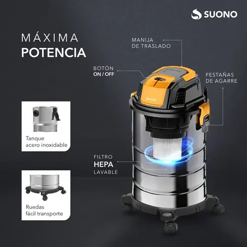 Aspiradora De Tacho 25 Litros 1300W Sin Bolsa - SUONO