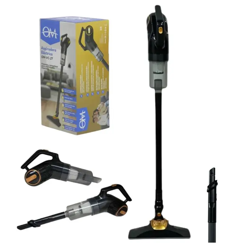 La Aspiradora Eléctrica OM-VC-27 combina diseño liviano, gran autonomía y un rendimiento eficiente, ideal para el hogar, la oficina y el hotel. Su sistema ciclónico sin bolsa y filtro HEPA lavable garantizan una limpieza profunda con bajo mantenimiento.