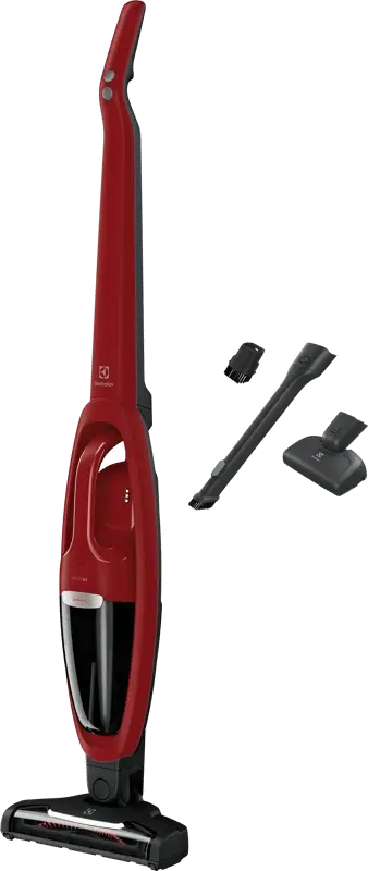 La potente y eficiente Aspiradora Ergorapido Well Q6 es el equipo ideal para promover una limpieza completa y eficiente. Con fácil acceso a la unidad portátil y a los accesorios integrados, alternar entre la limpieza del piso y las áreas difíciles será una tarea más simple y se puede usar en cualquier momento del día. Equipado con tecnología ciclónica axial, garantiza un rendimiento inigualable durante la limpieza, incluso con el depósito de polvo lleno¹. Ligera y manejable, realiza tareas con el mínimo esfuerzo, debido a su diseño ergonómico, que distribuye el peso de la Aspiradora Vertical sin cable, haciéndola más liviana para una limpieza sin esfuerzo, mientras que el doble mango, a su vez, garantiza una limpieza cómoda para el suelo y facilita el acceso a lugares más altos con la boquilla de extensión. Ergorapido Well Q6 se puede dejar fácilmente en cualquier lugar al instante, sin comprometer la decoración del hogar. La Aspiradora vertical Electrolux cuenta con accesorios de limpieza integrados. Con la boquilla turbo, remover el polvo y el pelo de los animales se vuelve simple y eficiente. Con un sistema de filtrado HEPA en cinco etapas que remueve hasta el 99,99% de micropartículas y alérgenos², promoviendo una limpieza eficiente con garantía de alto rendimiento, ahorrándote tiempo para concentrarse en otras actividades. La exclusiva boquilla turbo Care es ideal para eliminar fácilmente el pelo de las mascotas. Con solo tocar un botón, activa la función Brush Roll Clean para cortar, limpiar y aspirar todo el cabello y fibras enredados en el cepillo, además de tener una duración de batería excepcionalmente larga, hasta 45 minutos. POTENTE Y ADAPTABLE, PARA UNA LIMPIEZA RÁPIDA Y PROFUNDA: El fácil acceso a la unidad de mano y los accesorios integrados te permiten cambiar rápidamente de la limpieza del piso a áreas de difícil acceso y viceversa en un instante. DESEMPEÑO DE LIMPIEZA MÁS PROLONGADO*: La tecnología ciclónica axial garantiza un rendimiento inigualable durante la limpieza, incluso con el depósito de polvo lleno. *Mantiene el 99% del rendimiento de limpieza inicial con el tanque lleno según IEC 62885-2 edición 1.0: 5.1, 5.7 y 5.9 a plena potencia. DISEÑO ERGONÓMICO PARA UN TOTAL CONFORT DURANTE LA LIMPIEZA: La distribución del peso hace que la aspiradora sea más ligera para una limpieza sin esfuerzo, mientras que el mango doble asegura una limpieza cómoda en el suelo y para llegar a lugares más altos. ACCESORIOS DE LIMPIEZA INTEGRADOS EN LA ASPIRADORA: Toma y encaja los accesorios, como cepillo, extensor y boquilla turbo Care, para limpiar áreas de difícil acceso. SISTEMA DE FILTRACIÓN DE 5 PASOS: Sistema de filtración de 5 pasos, con filtración HEPA que remueve hasta **99,99% de las micropartículas y alérgenos.** Filtración HEPA que elimina hasta un 99,9% de micropartículas%> 1 µm de micropartículas de polvo. ** Probado según ISO 16890. BRUSH ROLL CLEANTM: Con el simple toque de un botón, corta y aspira el cabello, las líneas y el cabello adherido al cepillo. ____________________________ ESPECIFICACIONES » Marca: Electrolux » Tipo: Inalámbrica » N° de Certificado: 1 » Certificadora: 1 » Color: Chilli Red » Inalámbrica: S{i » Modelo: ERG36 » N° de Certificado: 1 » Certificadora: 1 » Empresa: ARF » Emocionales: http://pac.zscalertwo.net/3QzJWnSFw17f/global.pac