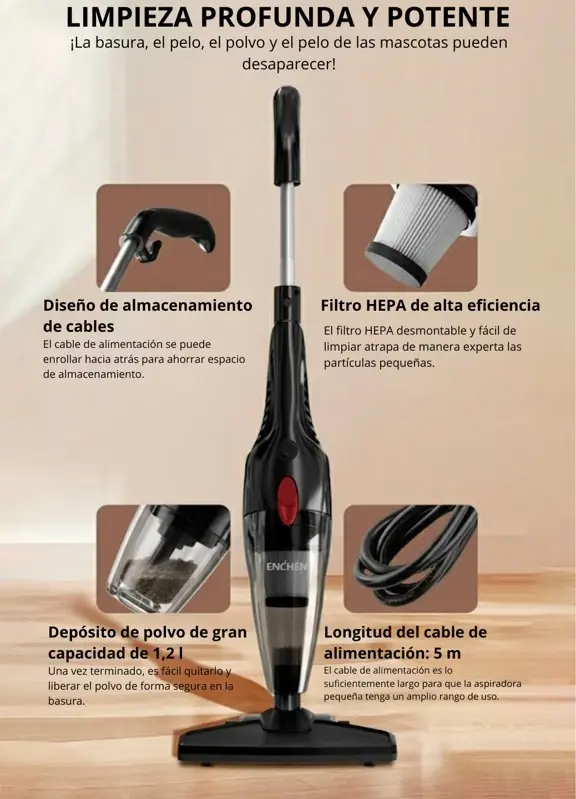 Descubra la solución de limpieza 2 en 1 que transformará su hogar. La aspiradora ENCHEN ha sido diseñada para ofrecer una limpieza profunda y poderosa que elimina sin esfuerzo la basura, el pelo, el polvo y el pelo de mascotas, dejando sus superficies impecables.