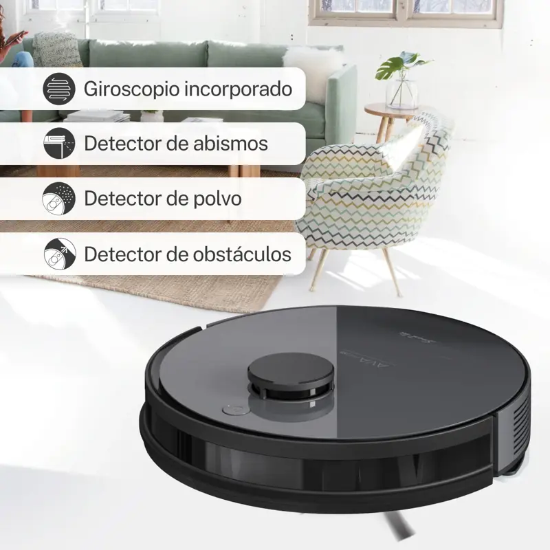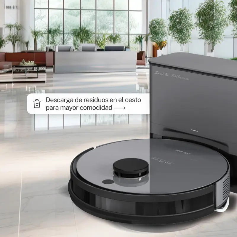- Ava Pro X: Control remoto o desde la app, programación de limpieza, sensores anti-caída y anti-golpes, detección de objetos, función mapeo y selección de áreas. Regresa automáticamente a su base y descarga residuos en su cesto.