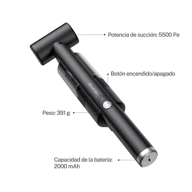 HV200: Aspiradora inalámbrica compacta, con 5500 Pa de potencia de succión y batería de 2000 mAh. Ligera, portátil e ideal para autos y espacios reducidos.