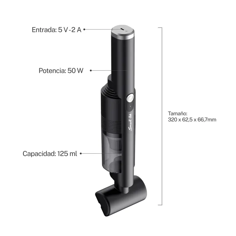 - HV200: Compacta y ergonómica, incluye boquilla y cepillo para mayor versatilidad. Funciona sin cables y con carga USB para uso práctico en cualquier lugar.