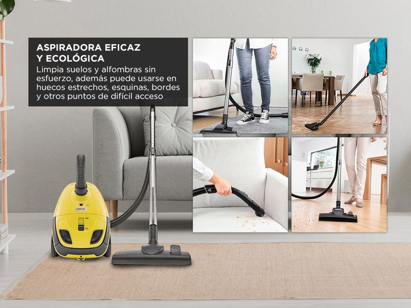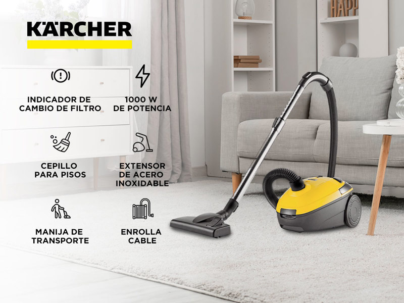 Como en todos los equipos Kärcher, en el VC 1 la funcionalidad es la máxima prioridad. Esta aspiradora eficaz y ecológica limpia suelos y alfombras sin esfuerzo. Además puede usarse en huecos estrechos, esquinas, bordes y otros puntos de difícil acceso. Su cómodo sistema de bolsas de filtro simplifica la eliminación de bolsas enteras, y gracias al práctico almacenaje de accesorios, siempre impera el orden. De diseño elegante y de prácticas dimensiones, la aspiradora resulta perfecta para los hogares modernos. Este equipo ideal para familias ofrece también un filtro F8 que absorbe el 90 % del polvo y las partículas y mantiene el aire limpio incluso durante la aspiración.EspecificacionesLimpiadora AspiradoraTipo: Aspiradora con bolsaPotencia absorbida (W): 1000Radio de acción (m): 7,5Volumen de la bolsa del filtro (l): 1,5Intensidad acústica (dB/A): 85Tipo de corriente (V/Hz): 220 - 240 / 50 - 60