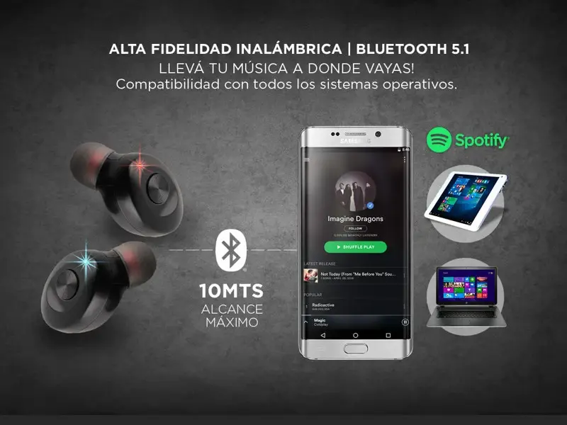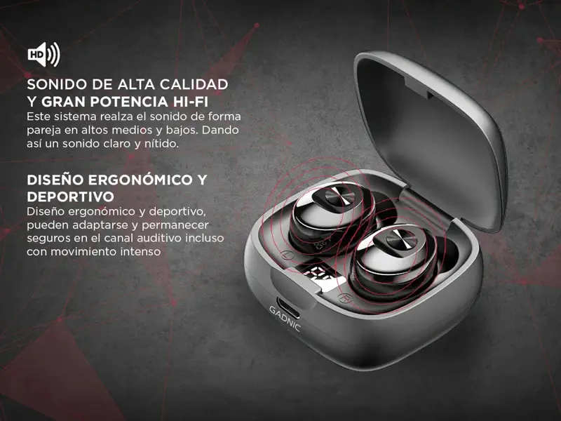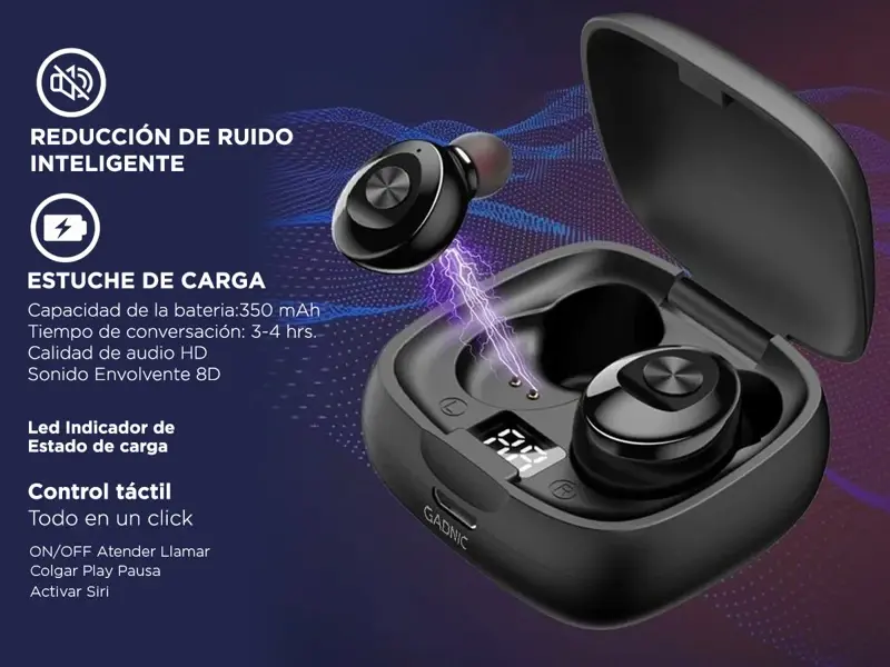Auriculares Bluetooth Inalambricos, ideales para el dia a dia, comodos y ultralivianos, muy faciles de usar, los sacas del estuche cargador, se enlazan a tu telefono y te los pones, con tecnologia Bluetooth 5.0 que ofrece una conexion mas fluida, rapida y estable. Soporta llamadas con audio de alta calidad Incluye estuche de carga magnetico con indicador de alta definicion el cual te muestra el nivel de carga, este estuche tiene una bateria integrada con capacidad para realizar hasta 4 cargas completas, brindandote muchas horas de uso para jornadas extensas de deportes y entrenamiento o viajes largos