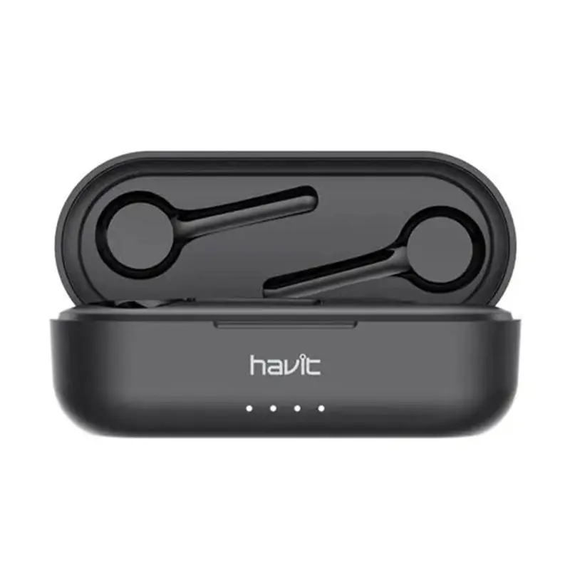 Havit HV-i92 BLUETOOTH WIRELESS EARPHONESCaja de carga – Rango de funcionamiento: 10m – Respuesta de frecuencia: 20Hz-20KHz – Entrada de voltaje: DC 5V/500mA – Tiempo de uso llamadas: 4.5h – Tiempo de espera: 2días – Tiempo de carga: 1.5h (caja de carga)IPX5 waterproof