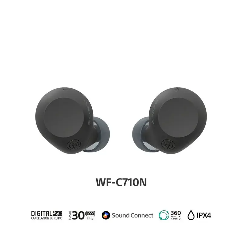 Sumérgete en el sonido con Noise CancellingLos micrófonos duales mejoran la función de Noise Cancelling de los WF-C710N al ayudar a detectar el ruido circundante y reducir la degradación del rendimiento debido a variaciones de ajuste individuales. Cambia al modo de sonido ambiental y disfrutarás de una experiencia de audio natural sin desconectarte del entorno.Tecnología de sensor de ruido con micrófonos dualesCon Noise Cancelling avanzado, los auriculares WF-C710N pueden aislarte del mundo que te rodea y permitirte disfrutar más de tu música. El sensor de ruido dual filtra el sonido exterior mediante dos micrófonos, por lo que lo único que escuchas es tu música.Silencia el vientoUna estructura de reducción de ruido del viento alrededor del micrófono reduce las distracciones cuando estás activo al aire libre y te permite concentrarte en tu música favorita.Sonido ambiente más natural y ajustableEn el modo de sonido ambiente, los auriculares WF-C710N captan mejor el sonido ambiente que te rodea gracias a los micrófonos de alimentación y retroalimentación, para que disfrutes de una experiencia de audio natural mientras mantienes la conexión con tu entorno. Además, la app Sony | Sound Connect te permite ajustar el sonido ambiente en 20 niveles o utilizar la configuración Transferencia de voz para conversar sin quitarte los auriculares.El control de sonido adaptativo se ajusta automáticamente a lo que hagasEl control de sonido adaptativo es una función inteligente que detecta dónde estás y qué estás haciendo para crear la experiencia de audio ideal en función del sonido ambiente. Incluso reconoce los lugares que visitas con frecuencia, como tu lugar de trabajo, el gimnasio o tu cafetería favorita, y cambia el modo de sonido según la situación.Batería, llamadas, lo que necesitas todos los díasBatería duradera para un uso diario sin complicacionesDiseñados para usarlos cómodamente todo el día. La mayor duración de la batería significa que puedes disfrutar de hasta 8,5 horas en tus auriculares y otras 21,5 horas en el estuche. Eso equivale a 30 horas completas de escucha cuando están completamente cargados00. Y con la carga rápida de 5 minutos, puedes recargarlos rápidamente para obtener una hora adicional.Llamadas nítidasCon la tecnología Precise Voice Pickup, que controla los micrófonos dentro y fuera del tapón, y al procesamiento de señal de audio, las conversaciones son muy claras, incluso en entornos ruidosos. Nuestro algoritmo de reducción de ruido se desarrolló con IA que utiliza más de 500 millones de muestras de voz para eliminar el ruido ambiental y extraer tu voz con claridad.Llamadas con manos libres de forma sencillaLa conversación fluye con la función de llamadas con manos libres, ahora más nítida con el micrófono integrado de alta calidad. No tendrás que sacar el teléfono del bolsillo.Muchas formas de usarLos WF-C710N ofrecen un sonido de alta calidad, tanto si estás escuchando música como si estás en una clase en línea o trabajando desde casa.Sonido sin concesiones en cada canciónUna calidad de sonido que amarásGracias a nuestra sintonización de sonido única y a nuestra unidad de diafragma de 5 mm, obtendrá graves potentes y una calidad vocal clara. Está bien equilibrado, con voces claras y naturales. Esto significa que puedes disfrutar de una amplia gama de géneros musicales.Que tu música suene más naturalCuando una fuente de música original está comprimida, pierde elementos de alta frecuencia que agregan detalle a una canción. Nuestro Digital Sound Enhancement Engine (DSEE™) los restaura con fidelidad para producir un sonido de alta calidad más cercano a la grabación original.El sonido que a ti te gustaAdapta el sonido a tus preferencias. Elige entre una variedad de ajustes preestablecidos que coincidan con el género de música que estás escuchando y guarda tus propios ajustes preestablecidos usando la función de ecualización personalizada en la aplicación Sony¦Sound Connect.Auriculares certificados para una mejor experiencia personalizadaAnaliza la forma de tu oreja para optimizar tu experiencia con los auriculares certificados para 360 Reality Audio y la app Sony | Sound Connect, y sumérgete en la experiencia musical definitiva0.360 Spatial Sound PersonalizerCon la app Sony | 360 Spatial Sound Personalizer0, disfrutarás de una experiencia de sonido optimizada para ti. La app captura y analiza la forma de tu oreja para que los auriculares creen tu propio campo de sonido espacial cuando se emparejan con televisores BRAVIA™0. Simples, pero sofisticadosColores que no pasan de moda y que se adaptan a tu estiloCon un diseño naturalmente elegante y compacto y cuatro colores atemporales, que incluyen un azul transparente nuevo de claridad cristalina, junto con rosa, blanco y negro, para darle un toque de belleza a tu día0.Grandes características, tamaño pequeñoLos auriculares WF-C710N tienen todas las funcionalidades que necesitas, incluidos micrófonos adicionales para un mejor Noise Cancelling. Al mismo tiempo, son ligeros, fáciles de llevar y cómodos. La forma redondeada sin bordes los hace cómodos para orejas de todos los tamaños.Superficie con diseño ergonómicoUna forma que se adapta perfectamente al oído humano con una superficie ergonómica se diseñó especialmente para un ajuste más estable. Diseñados con datos de formas de oídos recopilados desde la aparición de los auriculares internos en 1982 y con evaluaciones de la sensibilidad de los diversos tipos a fin de garantizar una forma ideal y cómoda para muchas personas.Son ligeros y caben en tu bolsilloEl estuche de carga cilíndrico es pequeño y liviano, lo que hace que sea más fácil llevarlo en un bolsillo o bolso pequeño. La textura con patrón geométrico en la superficie exterior del estuche es elegante y, al mismo tiempo, práctica para facilitar la extracción del estuche.Control con un toqueReproduce, detén,