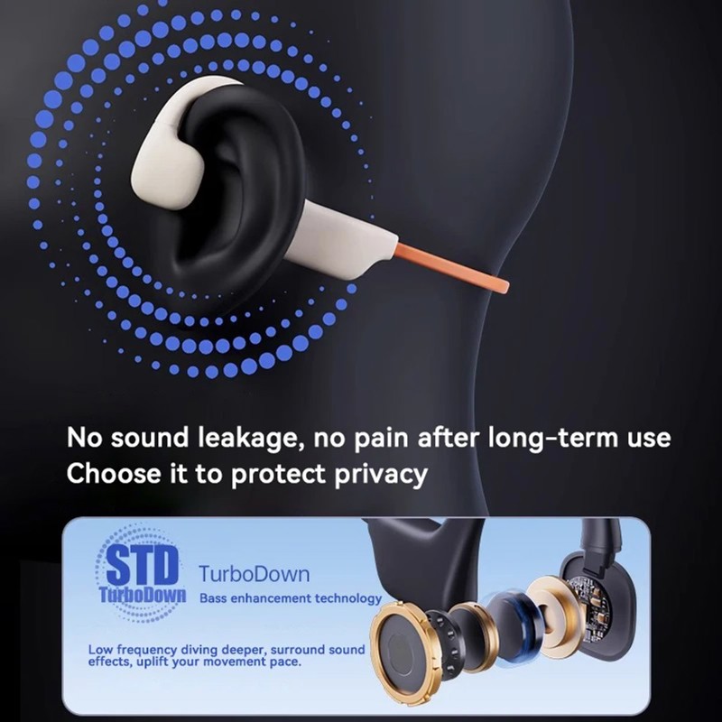 Auriculares Bluetooth con tecnología de conducción ósea que ofrecen un audio de alta calidad a través de los pómulos, permitiendo consciencia del entorno. Diseño de oído abierto para mayor comodidad. Equipados con Bluetooth 5.4, que garantiza una conexión estable y rápida hasta 15 metros. Cuentan con una batería de larga duración de hasta 10 horas de uso continuo con carga completa en 2 horas. Compatibles con dispositivos Android, iOS, laptops y Macbooks. Incluyen micrófono y soporte para asistentes de voz como Siri y Android. El paquete contiene los auriculares, un cable de carga y una instrucción.