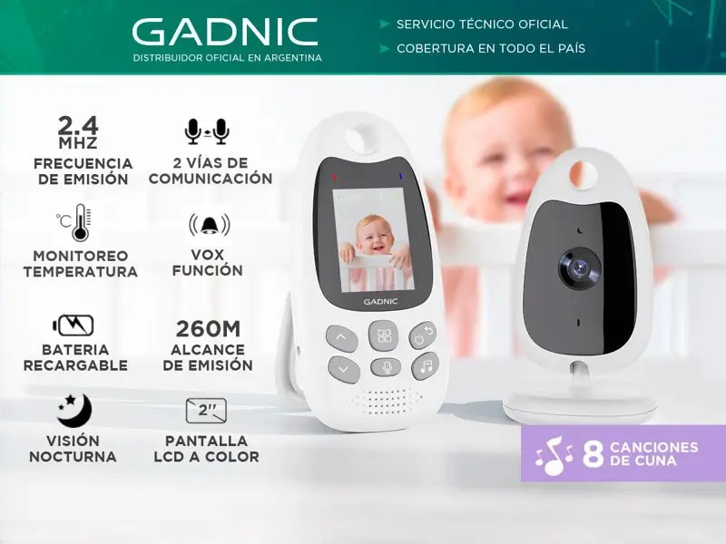 Gadnic presenta su nuevo Baby Call Camara+ Monitor Te presentamos nuestro último lanzamiento en tecnología, este dispositivo es la solución perfecta para los padres que buscan tranquilidad y seguridad para sus bebés mientras duermen o juegan en otra habitación. El Baby Call observar y escuchar a tu bebé en tiempo real, gracias a su cámara de alta definición y su sistema de audio bidireccional. Además, cuenta con una función de intercomunicador para que puedas hablarle a tu bebé o calmarlo desde cualquier lugar de la casa. Su diseño elegante y compacto se adapta a cualquier tipo de decoración, y su instalación es muy sencilla y rápida. Además, su batería de larga duración te asegura una conexión estable durante toda la noche.