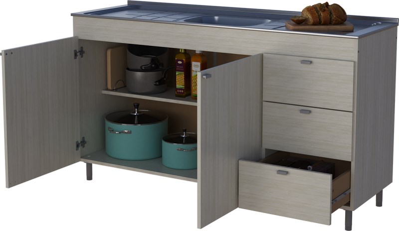 BAJO MESADA 140CM 4017 ABEDUL MUEBLES ORLANDI- 3 cajones- 2 puertas- Correderas plásticas- 1 estante- Patas regulables en altura- Cajonera derecha/izquierda- Melamina de 15 mm- Medidas (AnxAlxProf)1400x800x470 mm- Color Abedul- FOTO ILUSTRATIVA / NO INCLUYE TAPA MESADA DE ACERO INOXIDABLE- Modelo 4017- Garantía fabricante 12 meses- Origen Argentina