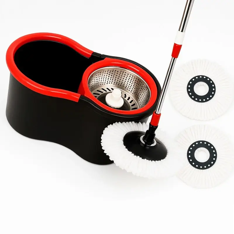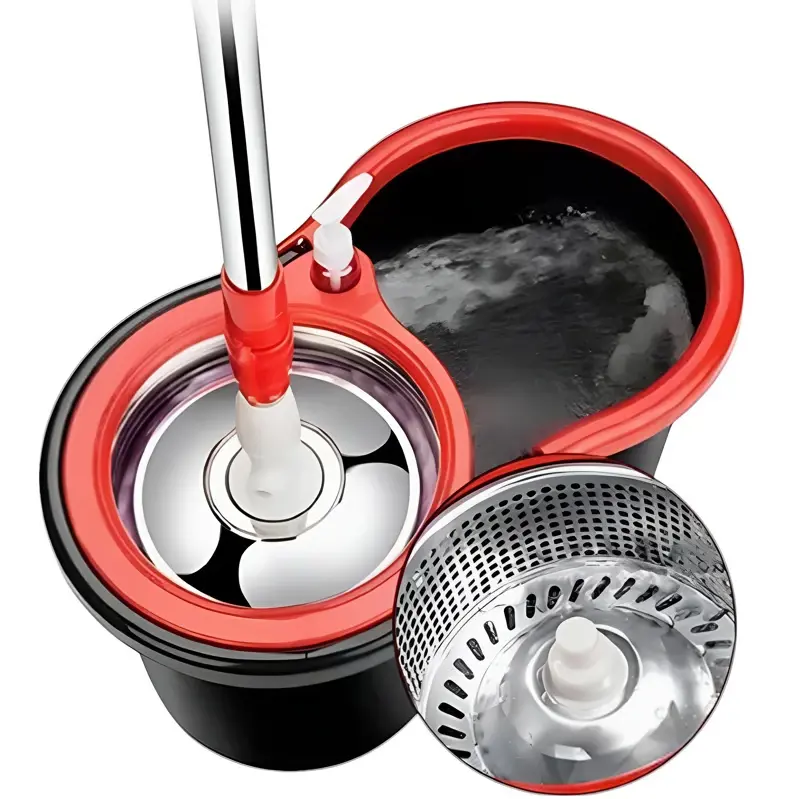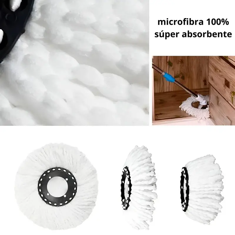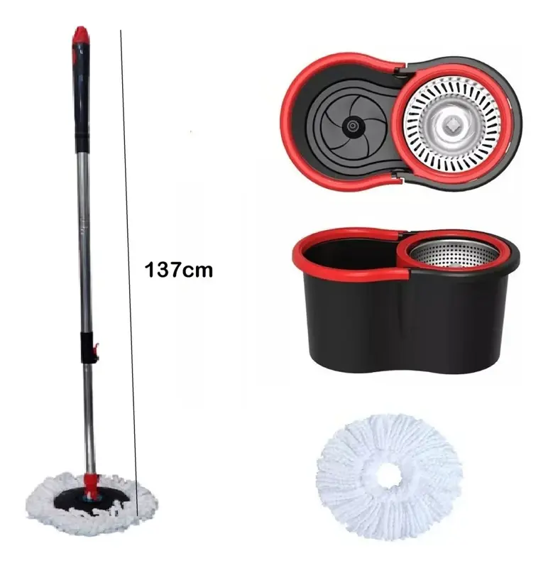 COMBO HOGAR ACTUAL BALDE MOPA CENTRIFUGO NEGRO Y ROJO + X2 REPUESTO MOPA SÚPER ABSORBENTESKU: 142960-N + 142972 x2COMBO7142- Balde centrifugo- Capacidad utilizable 5lts- Tambor de acero- Incluye 4 mopas de microfibra- Incluye Palo completo de 137cm de largo- Con rueditas en la base para facilitar su traslado- Con desagote y dispenser