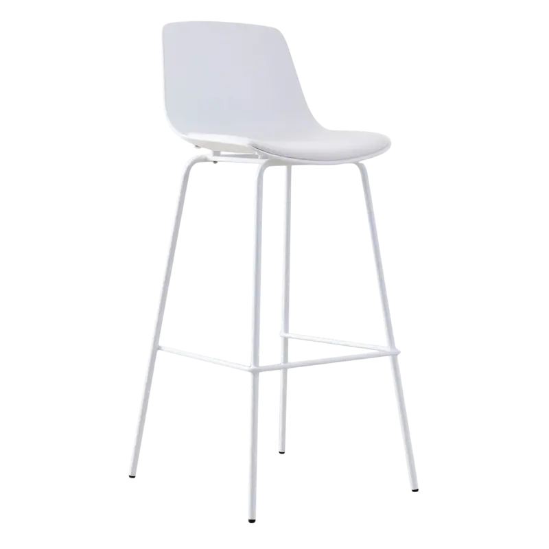 Banqueta Taburete ALPHAEstructura fabricada en polipropileno de alta resistencia. Patas de hierro pintadas al horno. Almohadón tapizado en cuero vegano.Ancho: 41 cm.Alto Total: 103 cm.Altura del Asiento: 76 cm.Profundidad del Asiento: 38 cm.Profundidad Total (incluyendo patas): 45 cm.Altura de apoya pies: 30 cm.