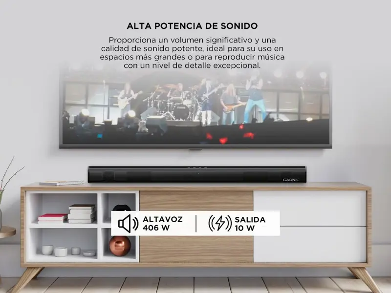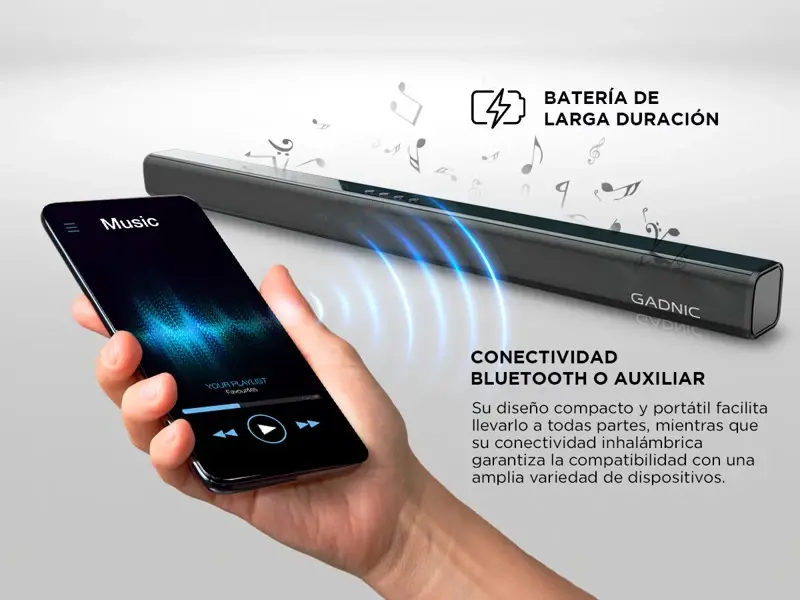 Experimentá un sonido excepcional en cualquier lugar con nuestra Barra de Audio GADNIC. Diseñada para ofrecer potencia, conectividad y versatilidad, este altavoz es perfecto para el hogar, la oficina o cualquier espacio donde deseas disfrutar de una calidad de sonido impresionante. Su diseño compacto y portátil facilita llevarlo a todas partes, mientras que su conectividad Bluetooth y Auxiliar garantiza la compatibilidad con una amplia variedad de dispositivos. Descubrí un nuevo estándar en audio inalámbrico con nuestra barra de sonido Gadnic. Potencia, conectividad y versatilidad se combinan para ofrecerte un rendimiento excepcional en cualquier situación. Especificaciones Alta Potencia: Si Inalámbrico: Si Compacto: Si Portátil: Si Micrófono de Alta calidad: Si Cable Usb: Si Ergonómico: Si Función Manos Libres: Si Potencia de salida: 10 W Potencia del altavoz: 406 W Capacidad de la batería: 1800 Modo de conexión: BT + AUX Versión de Bluetooth: 5.0 Tiempo de carga: 3 horas Tiempo de reproducción: 5 horas Entrada de alimentación: 5V 1A