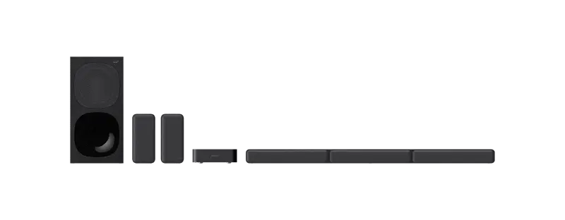 Tienda Oficial Sony Argentina Barra De Sonido Sony HT-S40R Bluetooth Subwoofer Inalámbrico Disfruta 5.1 canales de auténtico sonido Surround. Los parlantes posteriores inalámbricos, una Sound Bar de 3 canales y un subwoofer independiente se combinan para brindar un sonido cinematográfico potente, mientras la conectividad USB y Bluetooth® facilitan la reproducción de tu música favorita. Sumérgete en el potente sonido Surround Para disfrutar de una experiencia de audio excepcional, una combinación de Sound Bar, subwoofer y parlantes posteriores inalámbricos brinda un sonido Surround y dinámico que colma la habitación. Además, con una salida de 600 W y Dolby Digital®, obtendrás un sonido potente que te pondrá en el centro de la acción. Tecnología Dolby® Digital Disfruta de sonido Surround de alta calidad con 5.1 canales de audio independientes, con Dolby Digital. Puerto USB Utiliza el puerto USB para reproducir contenido directamente desde un dispositivo USB. Elegante y discreta Los compactos y potentes parlantes posteriores inalámbricos se integran perfectamente en la sala y se pueden instalar en la pared con facilidad. HDMI ARC La conexión HDMI ARC (canal de retorno de audio) te permite conectarte a televisores compatibles con un solo cable para reducir el desorden. Modo Cinema Siente y escucha la acción que te rodea, ya que el sonido se desplaza detrás de ti y te sumerge en una experiencia de cine. Modo nocturno ¿Es tarde y quieres ver una película? Esta función optimiza el equilibrio sonoro para que escuches todo con claridad incluso a un volumen bajo. Potencia de salida total de 600 W Una potencia de salida total de 600 W permite que cada escena de la película cobre vida. Diseño inalámbrico Con un amplificador inalámbrico para suministrar energía a los parlantes posteriores, no tendrás cables entre la parte frontal y posterior de la sala que te estorben. El subwoofer y la Sound Bar también comparten una sola conexión de alimentación, de forma que el sistema puede emitir un sonido cinematográfico sin complicaciones ni desorden. Conectividad Bluetooth® Usa Bluetooth® para transmitir música desde tu smartphone sin cables. Diseño versátil de dos posiciones Pon el amplificador inalámbrico como quieras: sobre una superficie plana, como una mesa, o instalado en la pared. Entrada óptica ¿Tu TV no admite HDMI ARC? Disfruta de un sonido de alta calidad en películas y otros medios a través de la entrada óptica. Modo música Disfruta de toda la viveza y riqueza de tu música favorita con gran detalle. Auténtico sonido surround de 5.1 canales Una Sound Bar de tres canales, parlantes posteriores y un subwoofer funcionan en conjunto para brindar un sonido intenso y de frecuencia completa. Conexión inalámbrica a TV Para que haya aún menos cables en tu sala de estar, puedes enviar el audio a tu sistema de Home Theatre sin cables con un televisor Sony BRAVIA compatible con Bluetooth®. Compacta y elegante La rejilla metálica perforada y la posibilidad de instalarla en la pared hacen que la Sound Bar se adapte a cualquier televisor. Configúralo en segundos La HT-S40R está lista para su uso casi inmediatamente. Solo enchúfala, conecta el parlante principal de la barra con sencillas conexiones identificadas por colores y conecta los parlantes posteriores a través del amplificador inalámbrico. Luego, siéntate y disfruta de 5.1 canales de auténtico sonido Surround. Entrada analógica Si ninguna de las opciones anteriores es viable, siempre puedes conectar tu TV con la entrada analógica. Modo de voz Ya sea para ver las noticias de la mañana o el capítulo final de tu serie favorita, este modo ajusta el sonido para acentuar las voces y que no te pierdas ni una palabra. EN LA CAJA