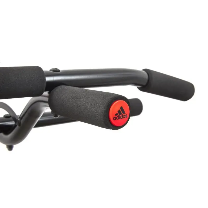Barra Ejercicio Dominadas Adidas para puerta Diseñado con un mecanismo de contrapeso, el la barra para puerta se adapta a la mayoría de los marcos para entrenar la parte superior del cuerpo. Equipado con empuñaduras acolchadas, la barra de ejercicios ayuda a ejercitar la espalda y los bíceps con 3 variaciones de pull-up. También se trabaja el tórax y el tríceps cuando se usa en el suelo. Equipada con protectores de espuma para puertas, la barra minimiza el daño al marco. Con su estructura única, se extiende más lejos de la puerta que la mayoría de las barras, permitiéndote realizar pull-ups completos. Características principales- Peso máximo del usuario: 110kg- Desarmable para almacenamiento- Dimensiones 98 x 45.6 x 27 cm- Agarre acolchado, ergonómico y seguro.- Modelo: ADAC-11402