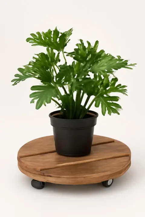 Base Soporta Macetas Redondo De Madera Con Ruedas 30Cm - HOLZ