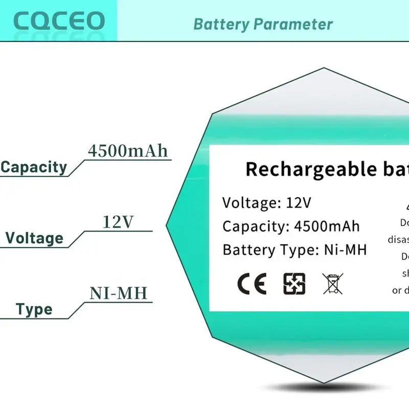 - Especificacion: tipo de bateria: Ni-MH; voltaje de la bateria: 12 V; capacidad: 4500 mAh
