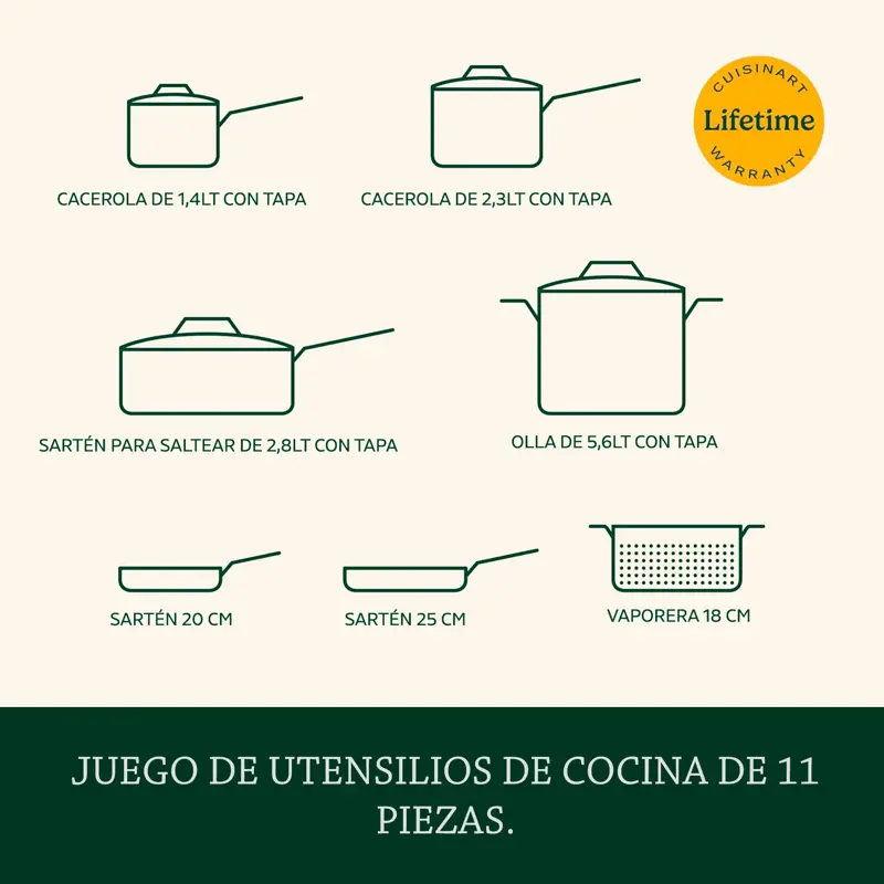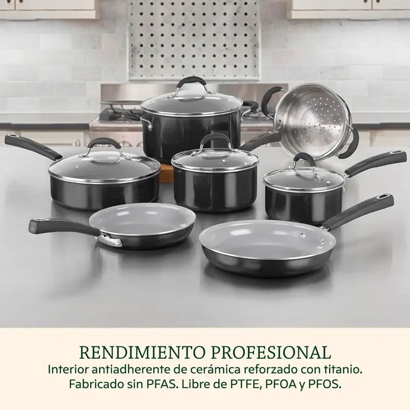 BATERIA DE COCINA CUISINART 54C-11BK 11 PIEZAS ANTIADHERENTE CERAMICO