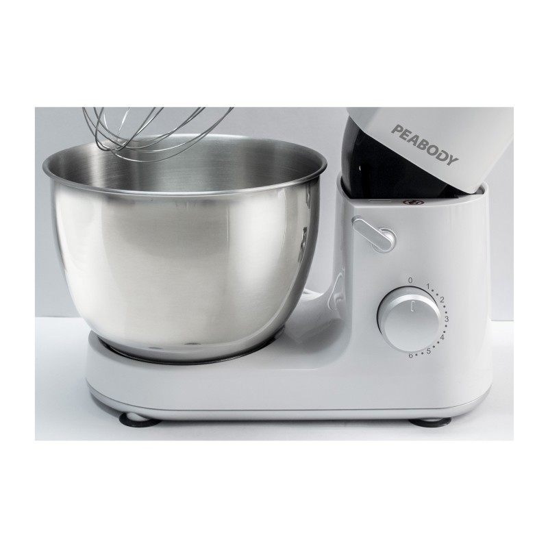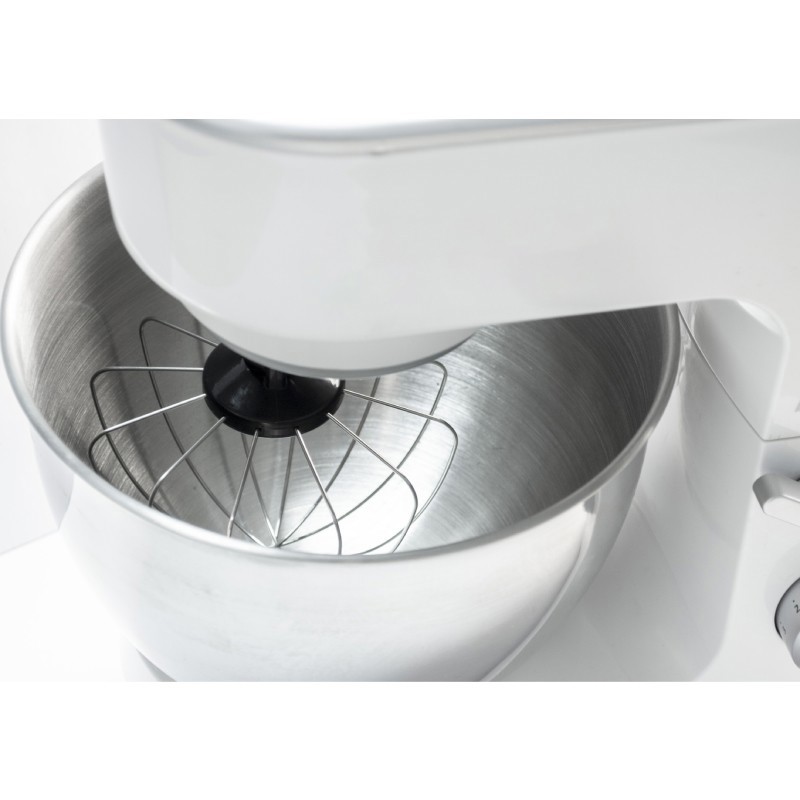 Detalles- Protector anti-salpicaduras.- Bowl de 4L de acero inoxidable.- Sistema inteligente de variación de velocidad.- Cabezal rebatible.- Pies antideslizantes.- Incluye accesorios: Batidor de alambre, gancho amasador, gancho Gluten Free, espátula de silicona y mezclador.- Revoluciones del motor (rpm) 50 - 200 RPM- Control electrónico de velocidad regulado por perilla