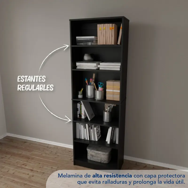 BIBLIOTECA BILLY CENTRO ESTANT NEGRA ALTO 1.80M MELAMINA
