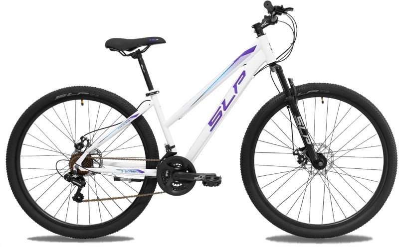BICICLETA MTB 5 PRO WOMAN RODADO 29 TALLE 16 BLANCO VIOLETA CELESTE SLP DESCARRILADOR IMPORTADO 3X6/7V MTB TIRO ABAJO 28.6 PIE BAJO CAJA ALUMINIO REGULABLE NEGRO HX-Y10-10 PIÑON IMPORTADO 7V. A ROSCA INDEX PALANCAS SLP MTB TRIPLE ACERO 24/34/42D170MM C/CUBRE MANIJAS CBIO+FR SLP 3X7V. CAMBIO SHIMANO 6/7V MTB TOURNEY TZ31 14-28D JUEGO DIRECCION 1 1/8 SLP ST-D3-C INTEGRADO FORMA MTB ACERO PALOMITA 31.8 700 MM FRENOS A DISCO MECANICO SLP JS-T8 F¥160R¥160 C/CABLE
