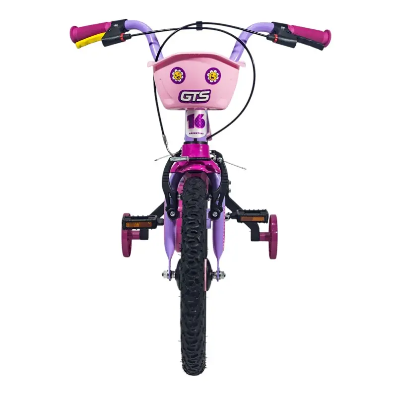 La Bicicleta de paseo R16 con cantimplora GTS rosa es ideal para niños de 4 a 7 años con una altura entre 110 cm y 120 cm, soportando un peso máximo de 30 kg. Su estructura está compuesta por cuadro, horquilla y manillar de acero al carbono, ofreciendo resistencia y durabilidad. Equipada con frenos V-Brake con perillas de nylon reforzadas, garantiza una frenada segura. Además, cuenta con un limitador de giro del manillar para mayor estabilidad y ruedas laterales desmontables que facilitan el aprendizaje. Los neumáticos con cámara interior absorben impactos, proporcionando un paseo más cómodo. Este modelo incluye una cesta delantera y una cantimplora. Las dimensiones de la bicicleta son 107 cm de largo, 69 cm de alto y 53,5 cm de ancho, con un peso de 9,5 kg.