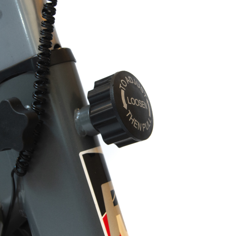 Bicicleta Spinning Randers ARG-874SP-R Tipo: Bicicleta Spinning. Peso máximo: 140 Kg. Altura máx. usuario: 195 cm. Disco de inercia: 13 Kg. Transmisión: por Correa. Tipo de resistencia: Mecánica | Pastilla de freno. Regule de Manubrio: Vertical. Asiento regulable: Horizontal y vertical. Handpulse: Si. Funciones Monitor: Tiempo, Velocidad, Distancia, Calorías, Odómetro, Pulso Ruedas para fácil traslado. Freno de emergencia. Incluye bandas elásticas. Altura de asiento al piso: 83- 101 cm. Dimensiones: 111 x 48 x 117 cm. Peso producto: 31 Kg.