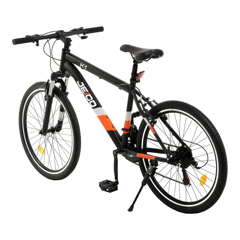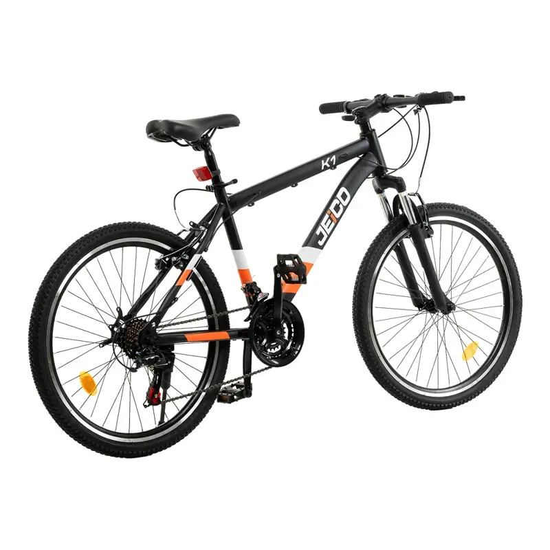 La Jeico K1 es una mountain bike ideal para quienes están dando sus primeros pasos en el ciclismo o buscan una bici versátil para el día a día. Su cuadro de acero con suspensión delantera sin bloqueo ofrece una buena combinación de resistencia y comodidad en distintos terrenos.