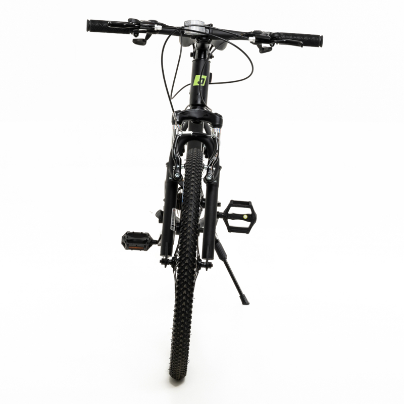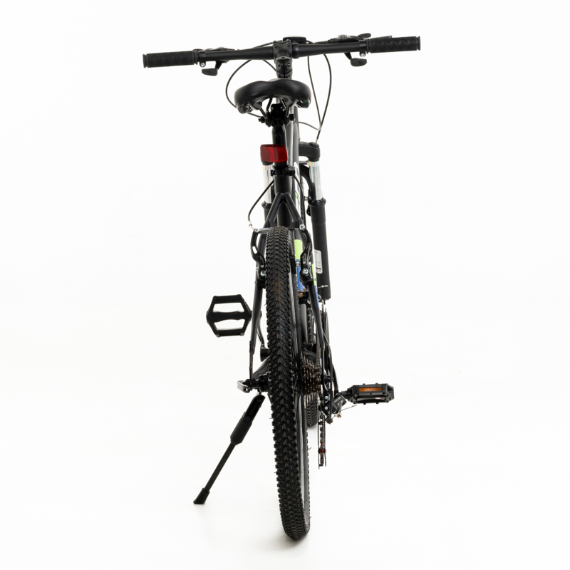 Con transmisión Saiguan de 21 velocidades, frenos V-brake y rodado 24", es una bici liviana, maniobrable y lista para acompañarte en cada salida. El manubrio con agarre ergonómico y el asiento MTB suman confort, mientras que los reflectores y el pie de apoyo la hacen aún más práctica para el uso diario.