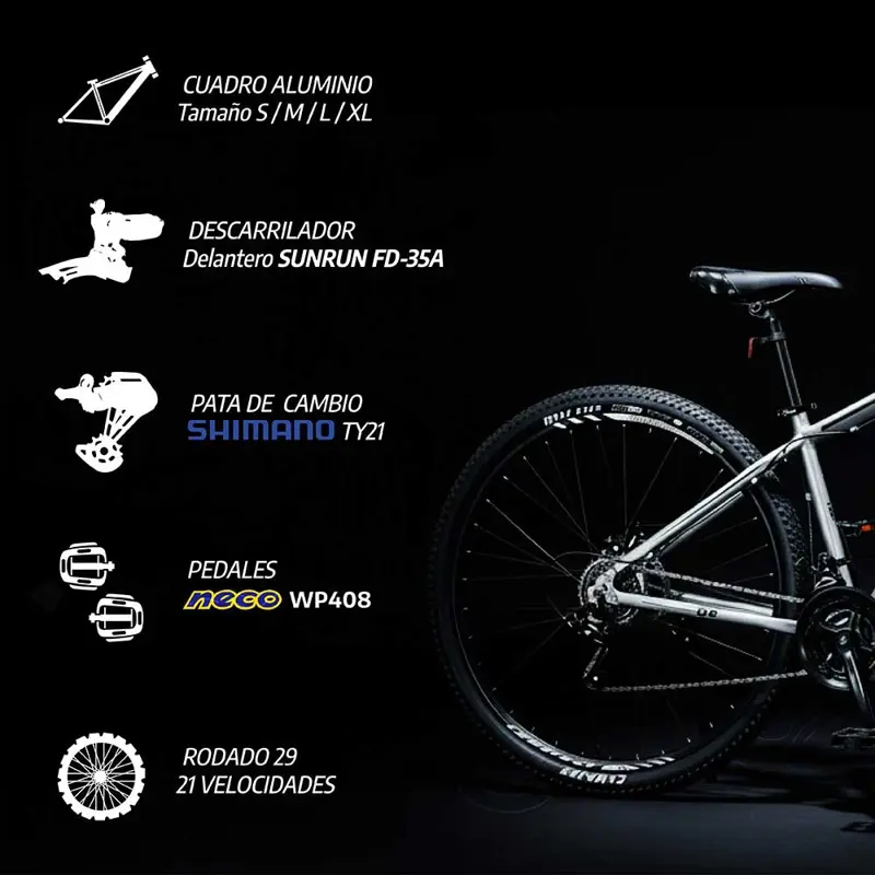 Descubre la bicicleta perfecta para tus aventuras tanto en la ciudad como en terrenos difíciles. Esta bicicleta de rodado 29 combina diseño moderno y funcionalidad para ofrecerte una experiencia de conducción inigualable.