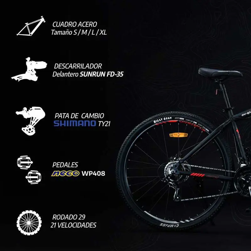 Bicicleta Mtb Overtech Q5 R29 , 21V con Shimano , Freno a Disco, Con suspensión