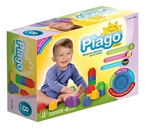 Bloques Blandos Para Bebés Piago RastiCaja De 8 Piezas. Una nueva línea compatible con RASTI y pensada para bebés de 6 meses que transitan su etapa sensomotora. Incluye bloques flexibles, fácilmente apilables, lavables y suavemente perfumados, más una guía llamada 'Sus primeras sonrisas', desarrollada en base a las experiencias del Psicopedagogo Jean Piaget con el juego, de quien proviene la marca de esta línea.Incluye Adaptador de compatibilidad con los sistemas Rasti y Rasti Junior.