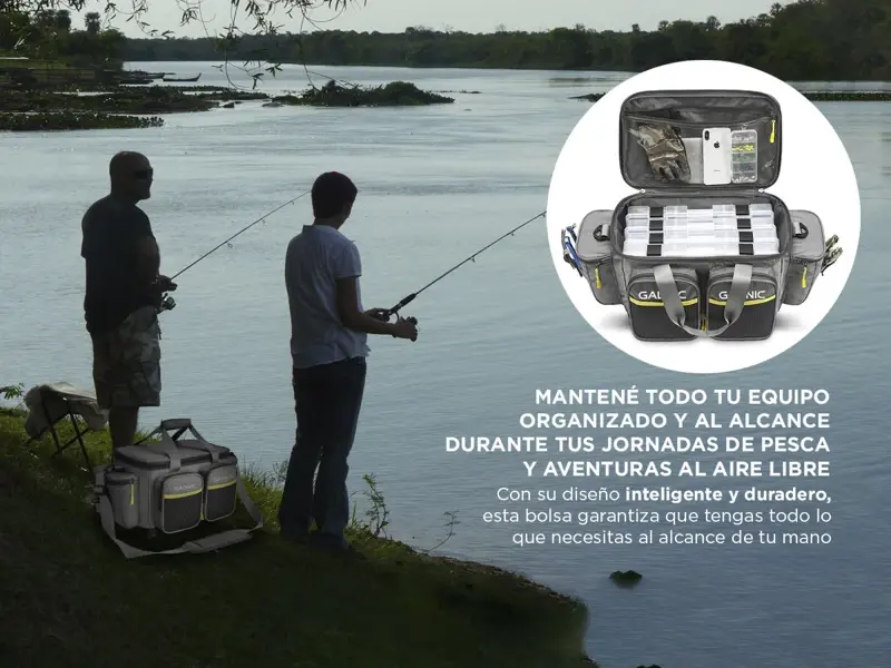 ¡Optimiza tus aventuras al aire libre con el Bolso de Pesca Gadnic! Presentamos un accesorio esencial para todos los entusiastas de la pesca y las actividades al aire libre que buscan una solución eficiente para llevar su equipo. Con esta bolsa, la organización y la comodidad se fusionan en un solo producto. La Bolsa de Pesca Gadnic es mucho más que un simple bolso; es tu aliada para mantener todo tu equipo organizado y al alcance durante tus jornadas de pesca y aventuras al aire libre. Con su diseño inteligente y duradero, esta bolsa garantiza que tengas todo lo que necesitas al alcance de tu mano. La durabilidad es primordial en entornos al aire libre, y este bolso lo entiende perfectamente. Fabricada con materiales resistentes y de alta calidad, está diseñada para soportar las condiciones más rigurosas, desde el calor del verano hasta las condiciones húmedas y ventosas. Tu equipo estará protegido en todo momento. La organización es clave para una experiencia exitosa de pesca y actividades al aire libre. Esta bolsa ofrece una variedad de compartimentos y bolsillos, diseñados para almacenar cajas de señuelos, carretes, cebos y otros accesorios esenciales. Mantén todo en orden y evita el desorden y la confusión. La comodidad también es una prioridad. El diseño de bandolera permite llevar la bolsa de manera cómoda y ergonómica, distribuyendo el peso de manera uniforme. Además, el acceso rápido a tus herramientas y equipos te permite concentrarte en la pesca sin perder tiempo buscando lo que necesitas. Especificaciones Tamaño del producto: 36 x 25 x 21cm Tamaño de bolsillo frontal: 17 x 13 x 4cm Bolsillo lateral: 17 x 14 x 6cm Tejido externo: rejilla impermeable en forma de diamante 600D Función: a prueba de desgarros Bolsillo tapa interna: de Malla Tejido interior: 210T Tela de la cubierta de la bolsa: PVC+PEVA Impermeable: Sí Base: rígida, evita la penetración de agua y arena. Correa de hombro: ajustable, removible Dos bolsillos laterales: para herramientas de fácil acceso Capacidad: 12L Bolsillos laterales: 6 Capacidad: para 4 cajas de aparejos.